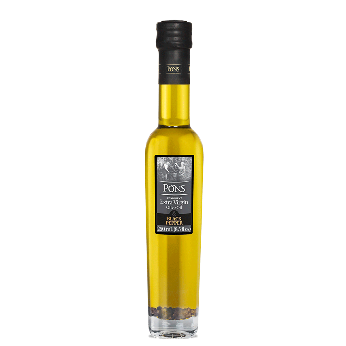 Aceite de Oliva Infusionado con Pimienta Negra. Un virgen extra de arbequina obtenido en nuestro pago, elaborado con aceitunas de cosecha tardía para no transferir intensidad y poder fusionarse perfectamente con los toques picantes y aromáticos de pimienta negra. Un aceite muy versátil que disfrutará en carnes blancas, pasta, sardinas, salmon, vegetales, cremas y ensaladas de arroz.