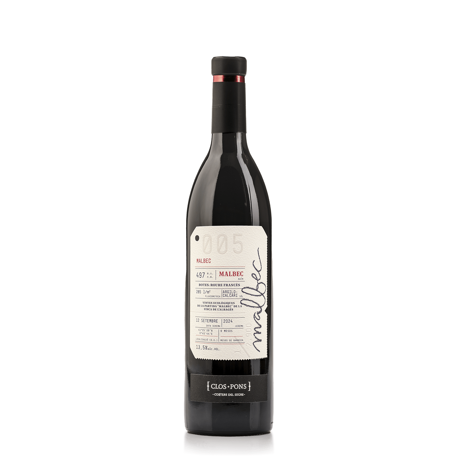 Colección Nº 005: un Malbec 100% que nace en nuestras terrazas de l’Albagés, a 490 msnm, sobre suelos de profundidad media y buen drenaje, donde el control de vigor y producción afina la expresión. El resultado es un vino más preciso y expresivo, con un equilibrio natural entre fruta y complejidad, vivo y jugoso sin perder elegancia, sostenido por taninos maduros y pulidos.