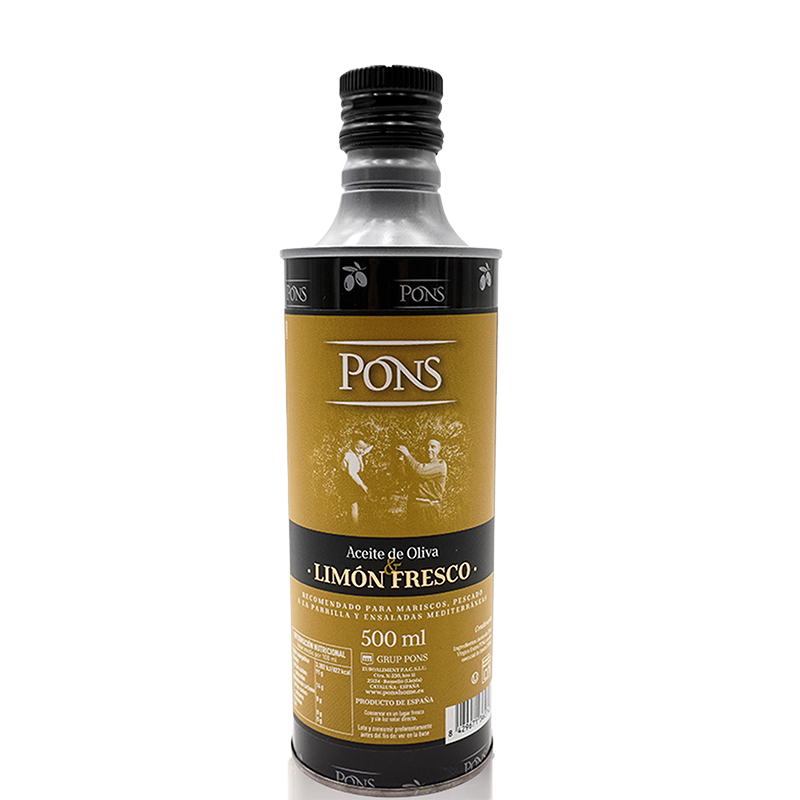 2. Aceite de Oliva cítrico con Limón 500ml, elaborado a partir de aceitunas arbequinas y limones frescos recién recolectados del árbol, molturado conjuntamente en nuestro molino de L’Albagés. Un aceite muy mediterráneo con toque cítrico que hará sus delicias culinarias en sandwichs, ensaladas de aguacate, ensaladas de pescado, mejillones, carnes blancas, salsas y fresas.