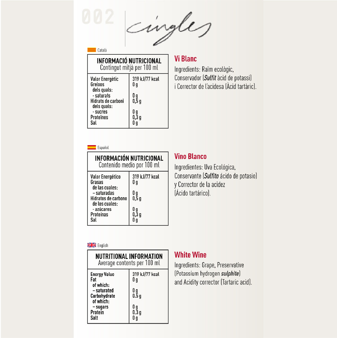Aged Collection Organic White produced in our Clos Pons Estate. This wine with 5 months of aging, is the expression of the pure minerality of the heart of our estate of L'Albagés. A very intense white wine with tropical and white fruit notes with a fresh, energetic and nervous palate. An excellent wine for cheeses, rice, smoked fish, Italian pastas, seafood and shellfish.