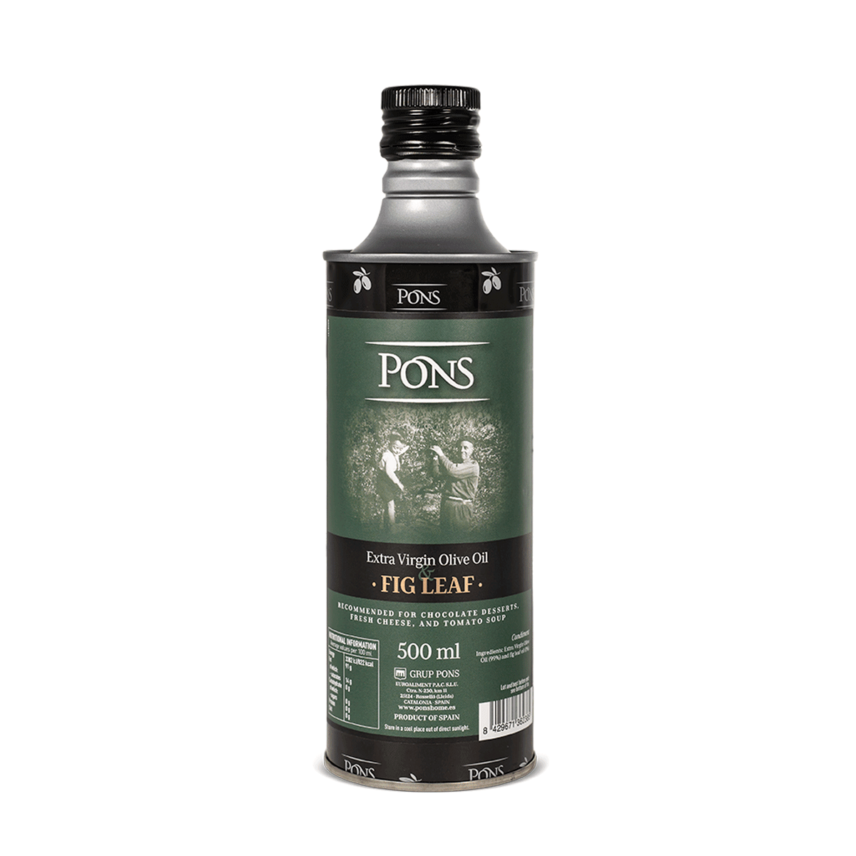 Aceite de oliva con hoja de higuera, elaborado a partir de aceitunas arbequinas y hojas de higuera recién recolectadas, molturado conjuntamente en nuestro molino de L’Albagés. El resultado es un aceite exótico y tropical, con notas a coco. Ideal para sopas de tomate, ensaladas con cítricos, helados de vainilla y especialmente con postres con chocolate.